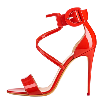 حذاء نسائي مثير برباط من الجلد الأحمر والأسود والوردي والأبيض لفستان الزفاف مع حزام بإبزيم ونعل من البولي يوريثان