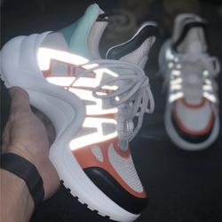 Sneakers con plateau in pelle di marca firmata ad arco con plateau suola spessa tacco Casual scarpe sportive alte riflettenti